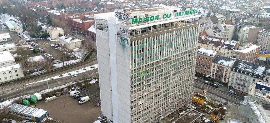La Maison du Bâtiment avait été construite dans les années 1960, comme immeuble de bureaux de 13 étages, d’une hauteur de 48 mètres, 42 mètres de long et 20 mètres de large.
