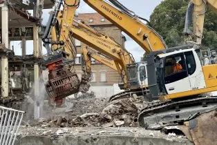 • Démolir l’ensemble des cloisons en brique, l’édicule, les casquettes béton, les lettres en toiture,