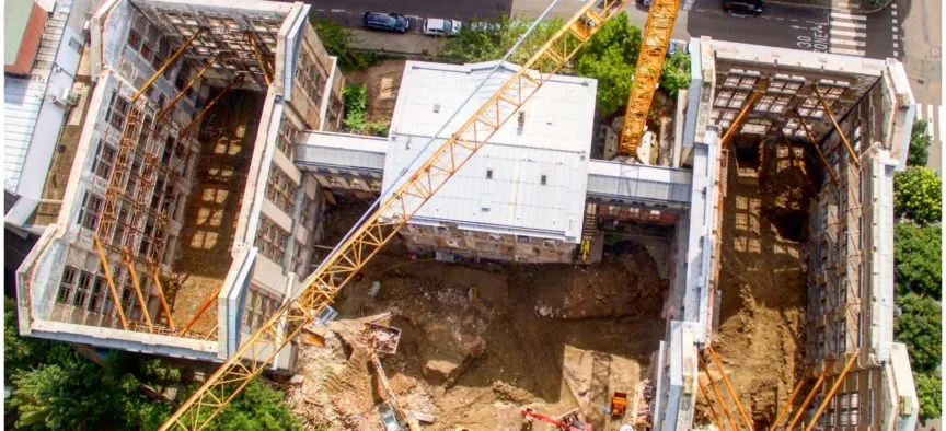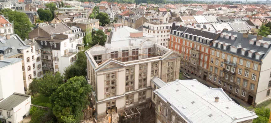 Déconstruction de la toiture, des voiles et planchers avec calcul et mise en place d’un étaiement de l’ensemble des façades.