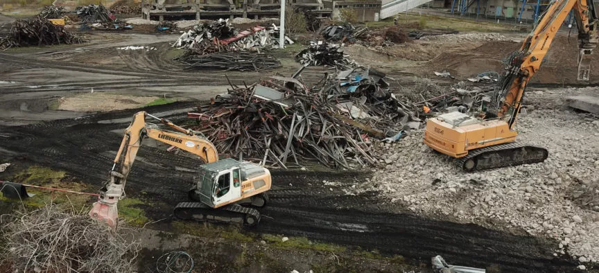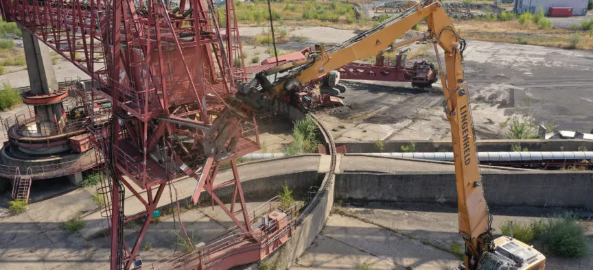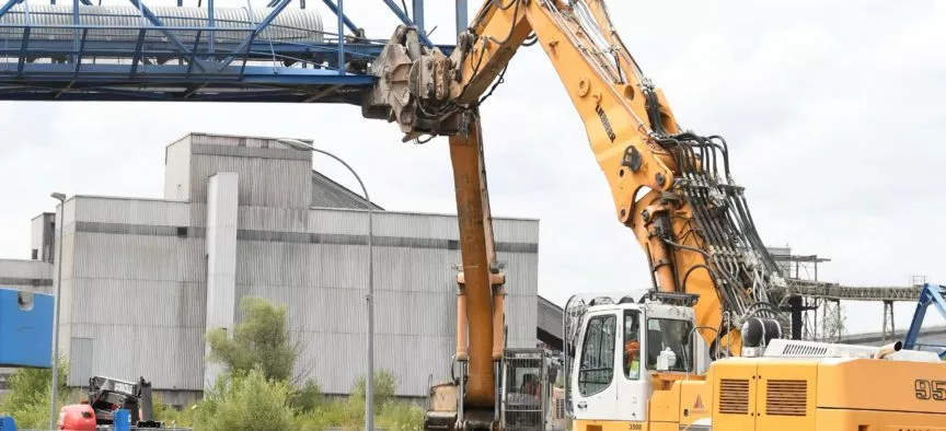 Démolition du parc à charbon de l’ancienne centrale thermique EDF de Blénod.