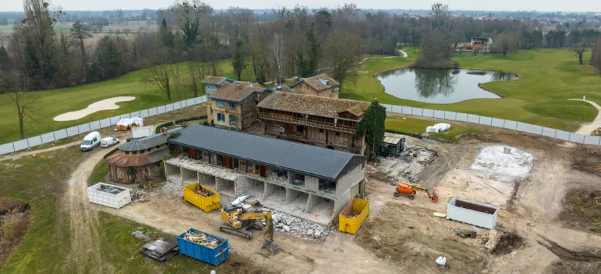 - Février 2023, pour une durée de 2 mois, pour la démolition totale des autres bâtiments (restaurant, annexe de l’hôtel, Caddy Master, boutique, logement) :