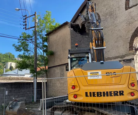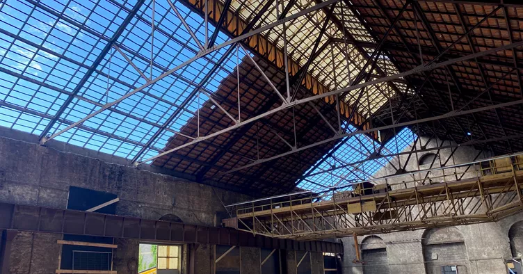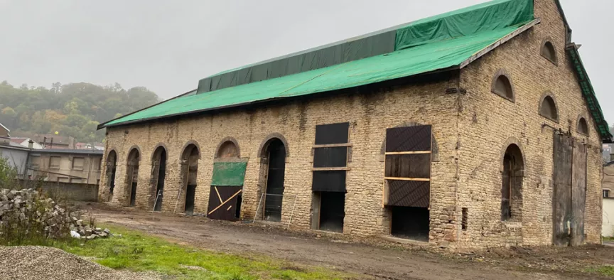 Mise à nu d’un ancien hall industriel à Longwy dans le cadre d’une restauration par l’EPFGE.