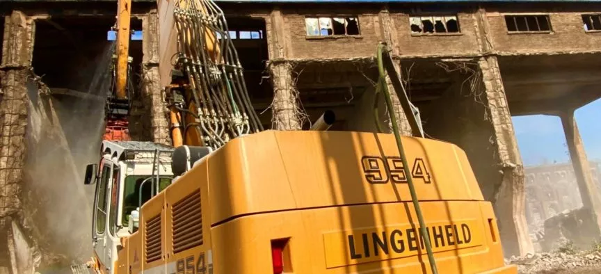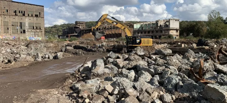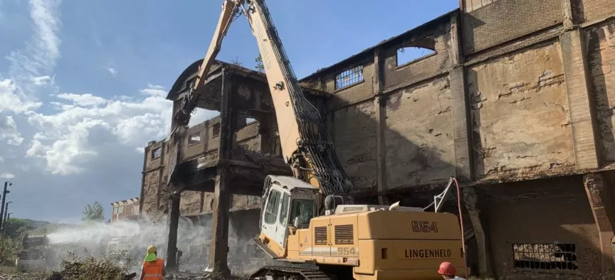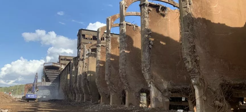 Démolition de la friche industrielle ArcelorMittal de la Lentille Terres Rouges abandonnée depuis quarante ans.